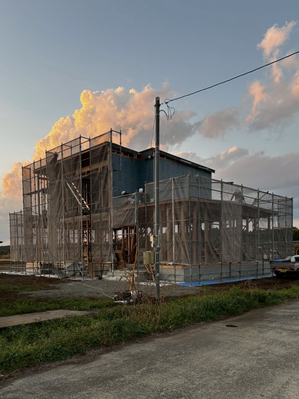 上棟 2025/12/01 【上棟】(株)ギバル様 事務所 本日は、西原村の現場にて(株)ギバル様の事務所の上棟を執り行いました。朝から大工さんたちのかけ声とともに、柱が次々と立ち上がり、大変大規模な事務所ですが一日で建物の形が見えてきました。お施主様にとっても、私たちにとっても事務所づくりの大きな節目です。これから本格的な工事が進んでいきますが、安全第一で、心を込めて進めてまいります。(株)ギバル様、本日は誠におめでとうございます!