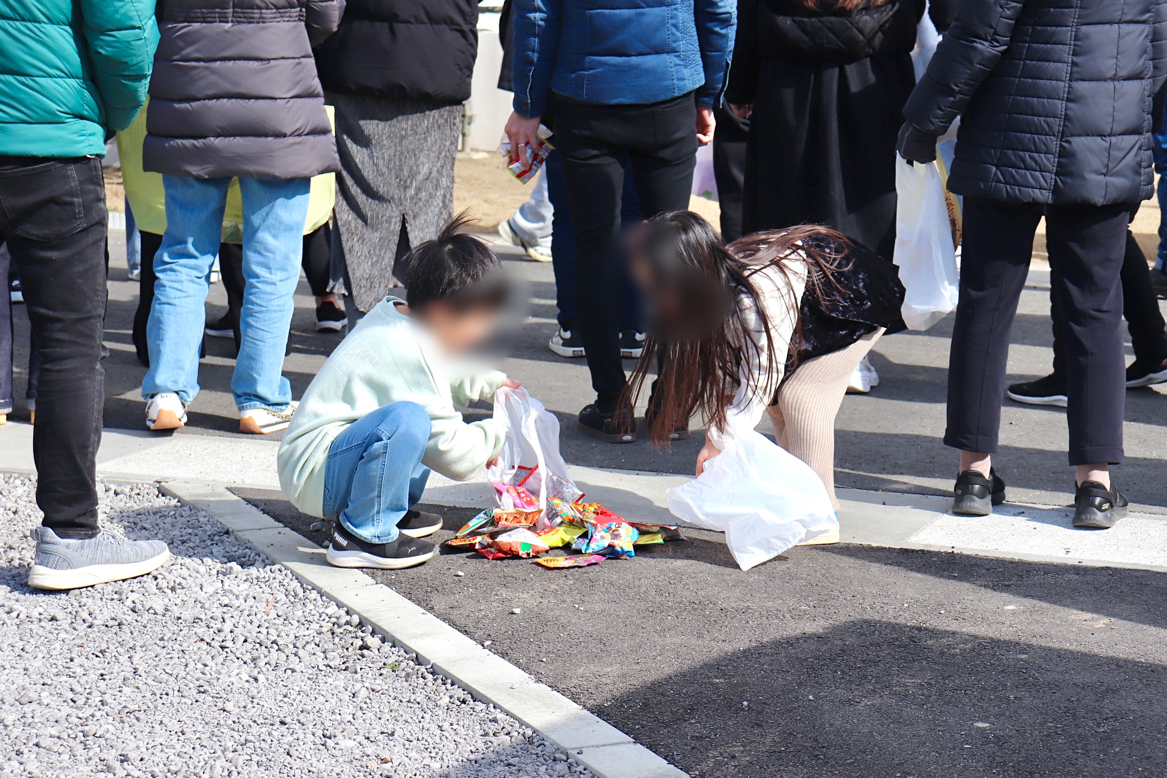 屋根のうえから施主様がお餅やお菓子を投げると、集まったご近所の方々や子どもたちが笑顔でキャッチ。