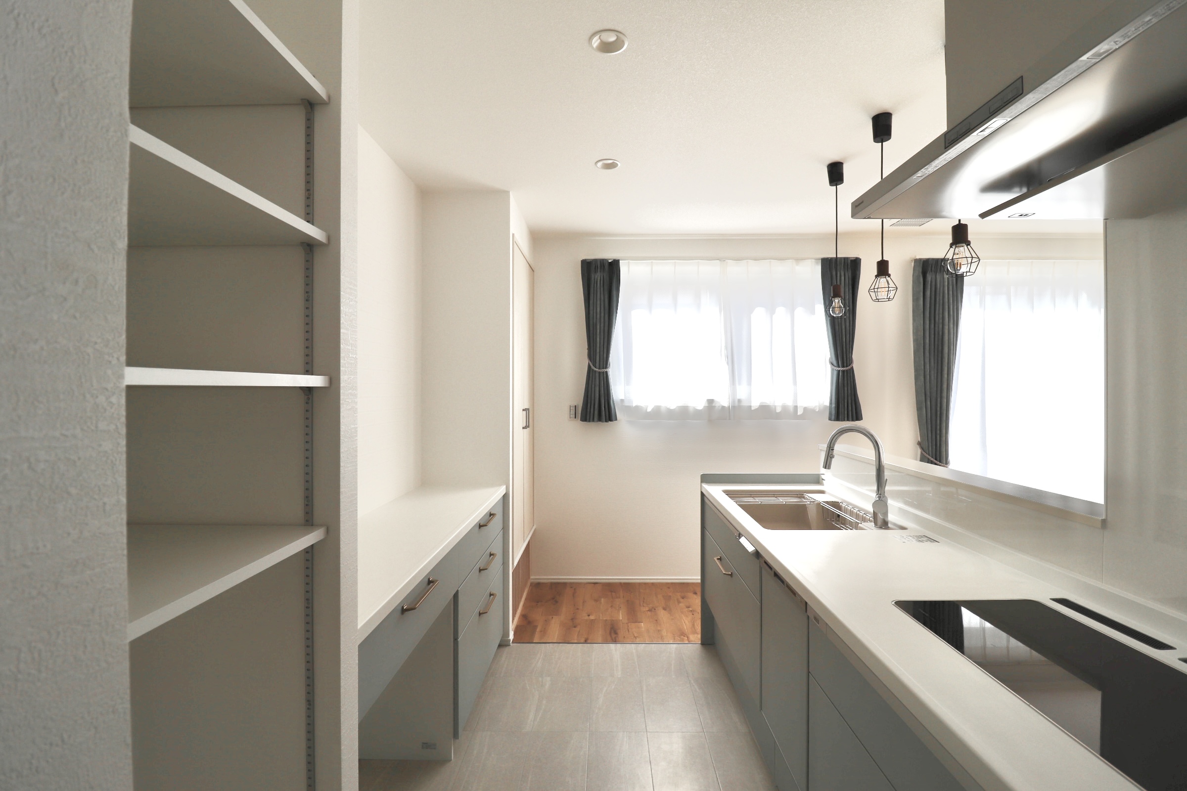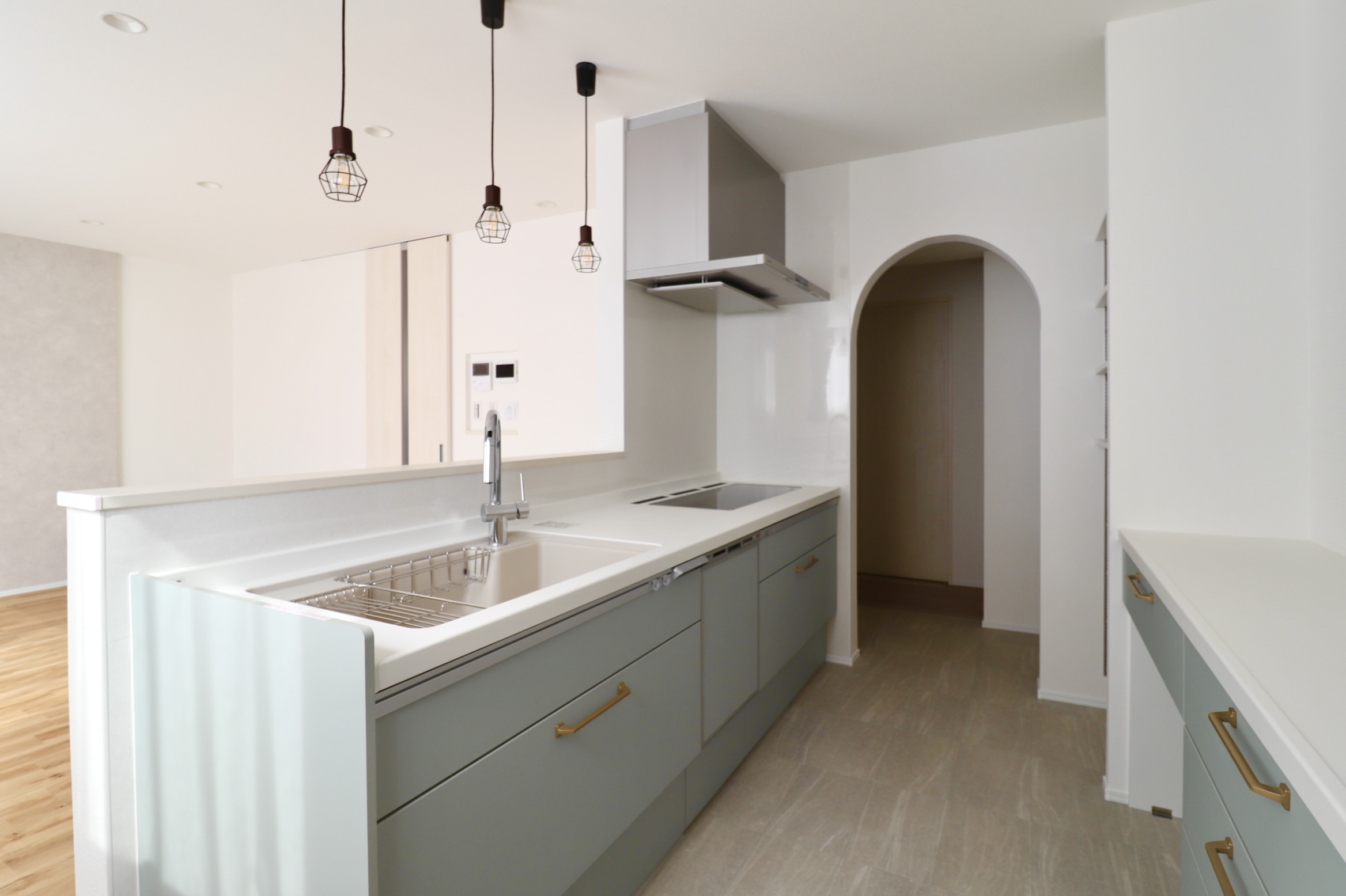 パントリーには丸アーチの垂れ壁を設け、空間にやわらかな表情をプラスしました。