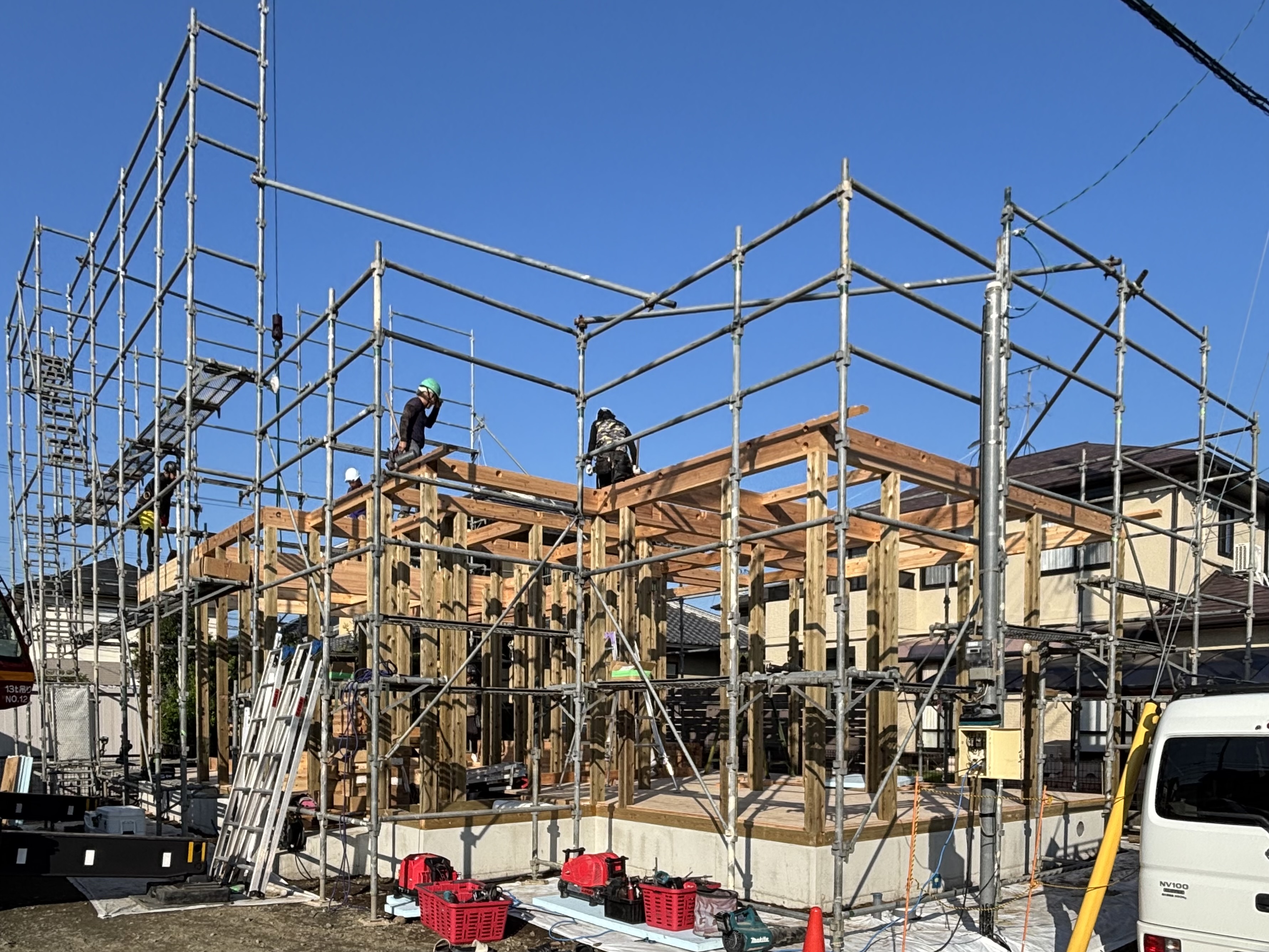 上棟 2025/10/07 【上棟】OM様邸 本日は、合志市の現場にてOM様邸の上棟を執り行いました。朝から天候にも恵まれ、無事に棟が上がり、建物の全体像が見えてまいりました。ここからいよいよ本格的な仕上げ工事に入ります。安全第一で作業を進めながら、OM様ご家族が快適に暮らせる素敵なお住まいを丁寧に形にしてまいります。完成まで、どうぞ楽しみにお待ちください。